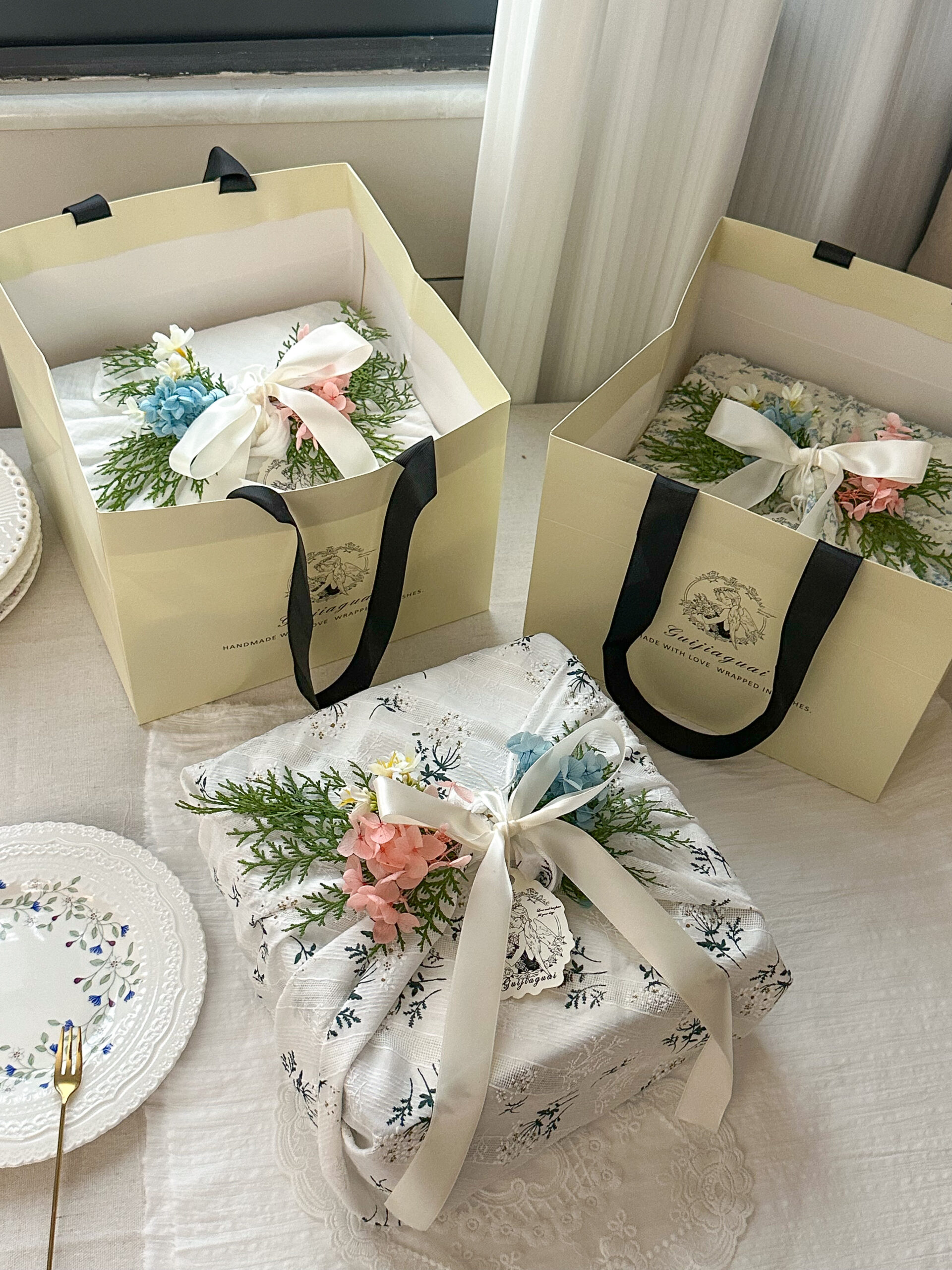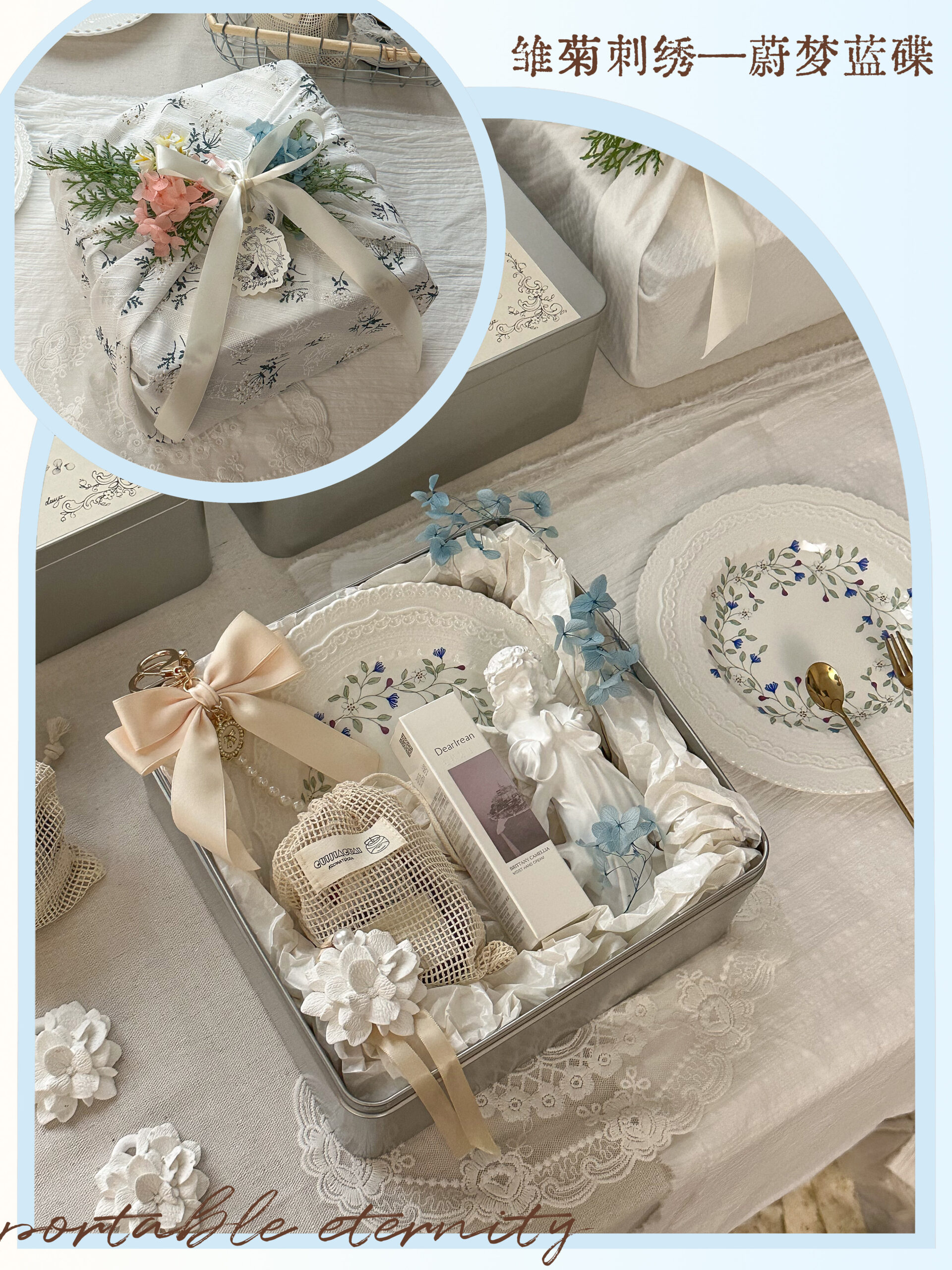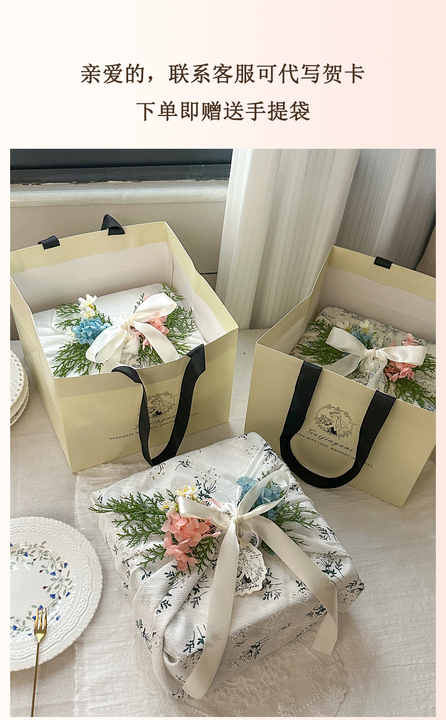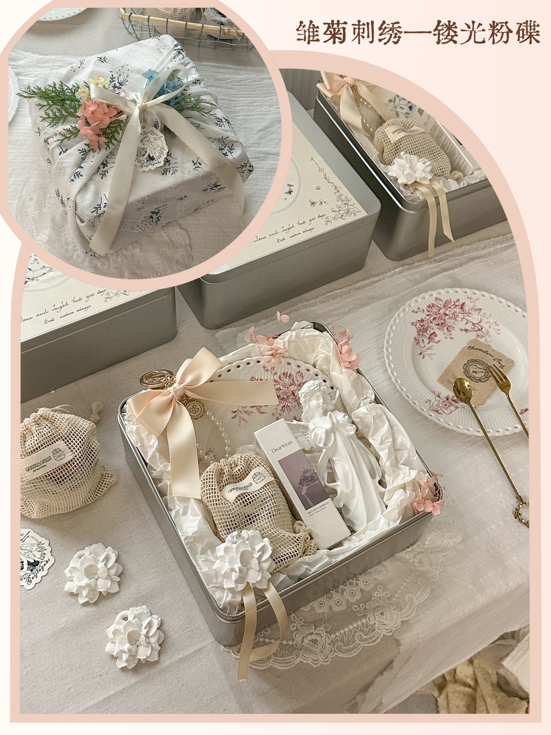 | Color classification | Empty iron box raffia handbag, Daisy embroidery-box-honeycomb paper-handbag, Blue floral-box-honeycomb paper-handbag, White cotton yarn-box-honeycomb paper-handbag, Daisy embroidery-box-raffia-handbag, Blue floral-box-raffia-handbag, White cotton yarn-box-raffia-handbag, Daisy embroidery-shiny pink dish [finished]], Daisy embroidery-Wei Meng blue dish [finished]], Daisy embroidery-Monet powder dish [finished]], Blue floral-shiny pink dish [finished]], Blue floral-weimeng blue dish [finished product]], Blue floral-Monet powder dish [finished]], White cotton yarn-shiny pink dish [finished product]], White cotton yarn-weimeng blue dish [finished product]], White cotton yarn-Monet powder dish [finished product]], Contact customer service to write greeting cards for free, Any style of order will be given a gift handbag |
